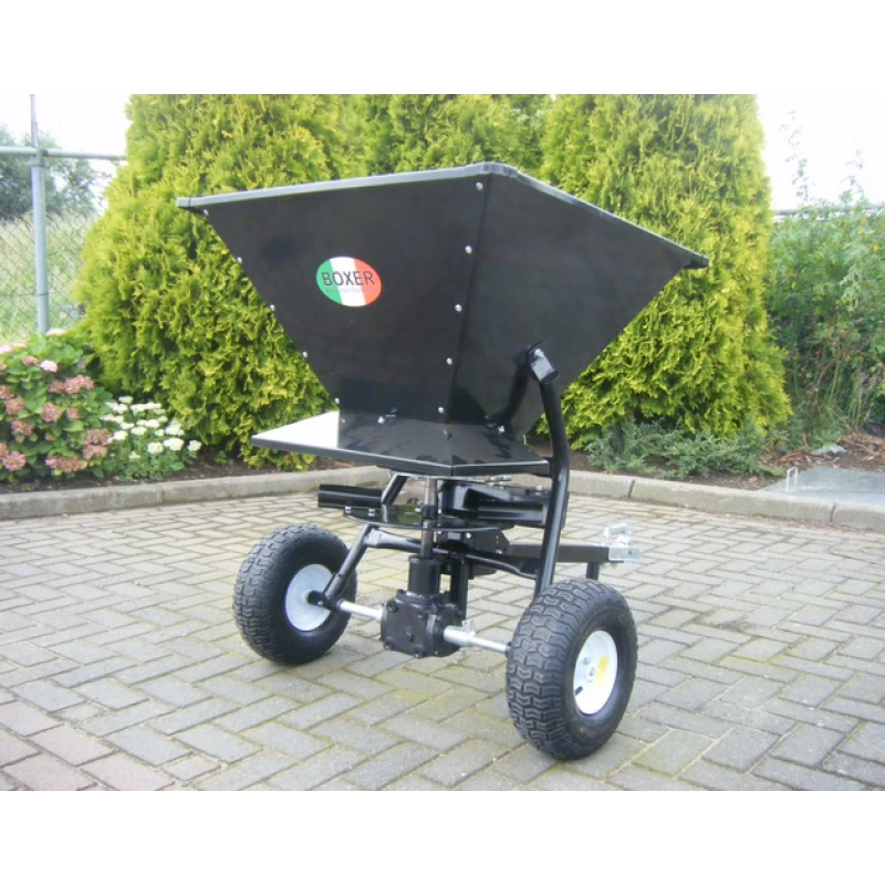 De strooier heeft zware aandrijving in olieblad. Ideaal te gebruiken achter ATV, auto, heftruck, tractor ect.