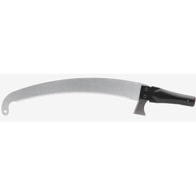 Gebogen blad met een haak aan het uiteinde om splijten van de schors te voorkomen.