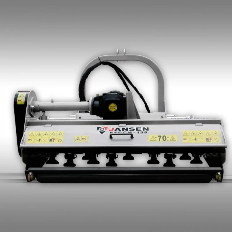 De klepelmaaier Jansen EFGCH-135 met hydraulische zijdelingse verschuiving kenmerkt zich door zijn bijzonder robuuste constructie. Deze klepelmaaier heeft een speciaal geharde haakse overbrenging en is optimaal als mulchmaaier, tractormaaier enz. inzetbaar.