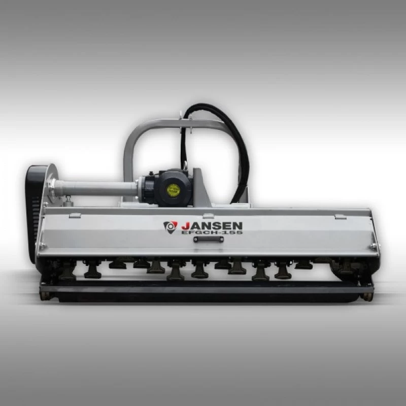 De klepelmaaier Jansen EFGCH-155 met hydraulische zijdelingse verschuiving kenmerkt zich door zijn bijzonder robuuste constructie. Deze klepelmaaier heeft een speciaal geharde haakse overbrenging en is optimaal als mulchmaaier, tractormaaier enz. inzetbaar.