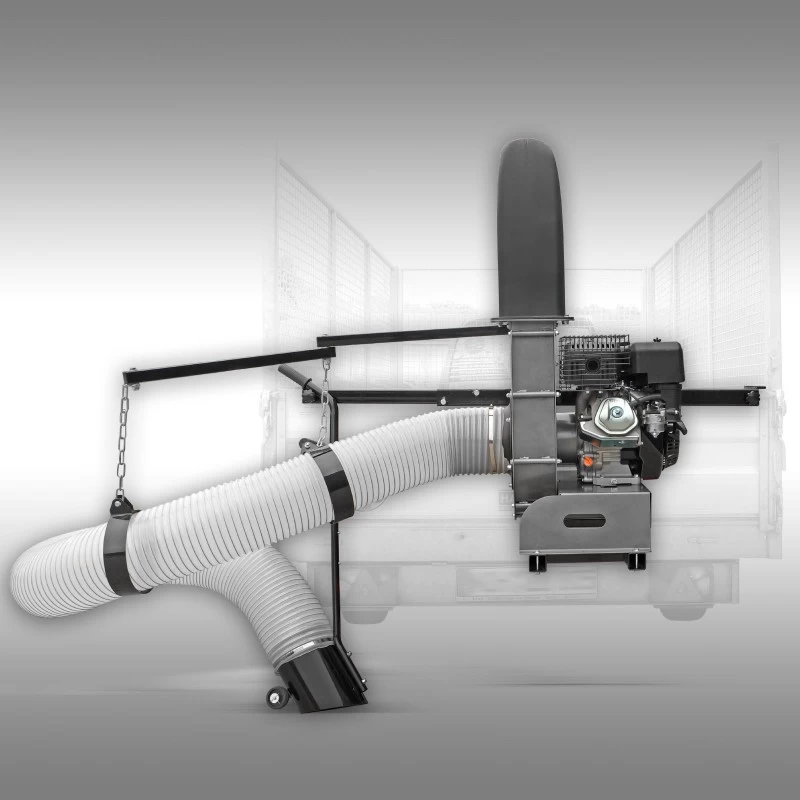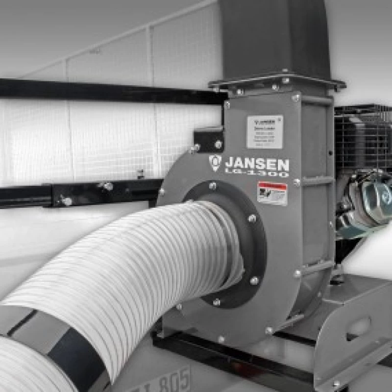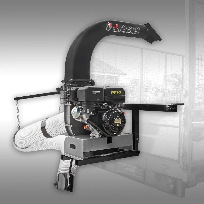 De truckloader Jansen LG-1300 is een krachtige zuig-unit incl. aanbouwframe voor montage aan vrijwel alle voertuigen met laadbak en zijschotten. Hiermee zuigt u in een handomdraai bladeren/loof, gras, papier en nog veel meer op en brengt u het via de uitblaaspijp direct op uw aanhanger. De uitblaaspijp kan door middel van 4 schroeven 90° draaien en beschikt over een uitblaasklep om de luchtstroom en de blaasrichting te bepalen. Dankzij de inbegrepen uitwerpverlenging zijn zelfs hogere aanhangers geen probleem.