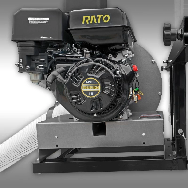 De betrouwbare en sterke 13 PK benzinemotor drijft de krachtige turbine aan die zich in een stevige behuizing bevindt. Het turbinewiel heeft een diameter von 400 mm en is uitgerust met 4 grote en 4 kleine schoepen die ervoor zorgen dat het aangezogen materiaal tot een minimum wordt verkleind en gecomprimeerd. Het apparaat heeft een zuigcapaciteit van ca. 3800 m³/h.