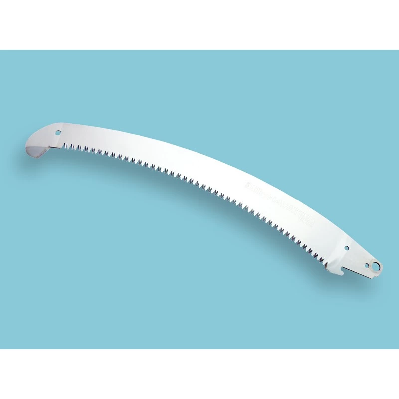 Zaagblad voor Silky stokzagen type Hayate. (SILKY artikelnummer KSI037342) Het 420mm lange gebogen blad van de Hayate is voorzien van SilkyÕs unieke Mirai-Me vertanding Deze laser uitgesneden tanden, met een kerf van 1.7mm, zorgen voor een flinke houtafname zodat u gemakkelijk en razendsnel de dikste takken doorzaagt zonder dat de zaag vast te komt te zitten. Het zaagblad is verchroomd, flexibel en alleen de vlijmscherpe tanden zijn impulsgehard. Twee messen (sikkels) zorgen samen voor een optimaal snoeiresultaat