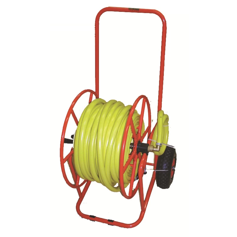 Deze professionele haspel is al gemonteerd met een 50 meter 3/4″ inch getricoteerd gele slang en de bijhorende 3/4″ inch messing snelkoppelingen.De haspel heeft een zeer stabiele voet zodat de haspel niet kan kantelen. De haspel is gemaakt van zeer sterk staal. De haspel heeft twee wielen zodat u de haspel makkelijk kunt verplaatsen. De snelkoppelingen bestaan uit een twee kraannippels, 3 snelkoppelingen 3/4″ inch en een pistoolspuit. Snij een deel van de tuinslang af, voor het watertoevoer van de kraan naar de haspel. De haspel is gemaakt van zeer sterk staal.