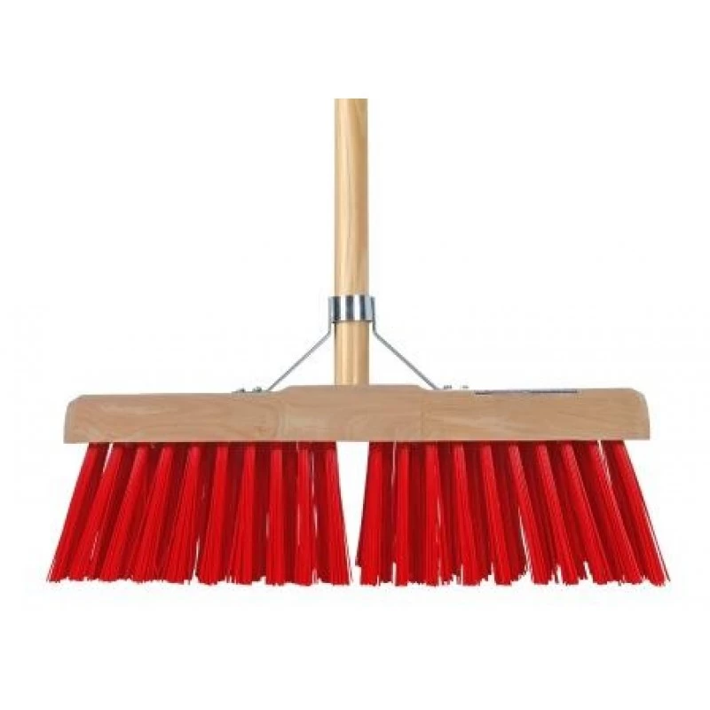 Deze bezem met kunststof haren is geschikt voor binnen en buiten. De bezem is ook ideaal voor vochtige ondergronden, het nylon zorgt ervoor dat bij vocht de haren niet aan elkaar gaan klitten. De breedte van de bezem is 45cm. De keuze voor welke breedte u moet kiezen is afhankelijk van de oppervlakte die er geveegd moeten worden.
